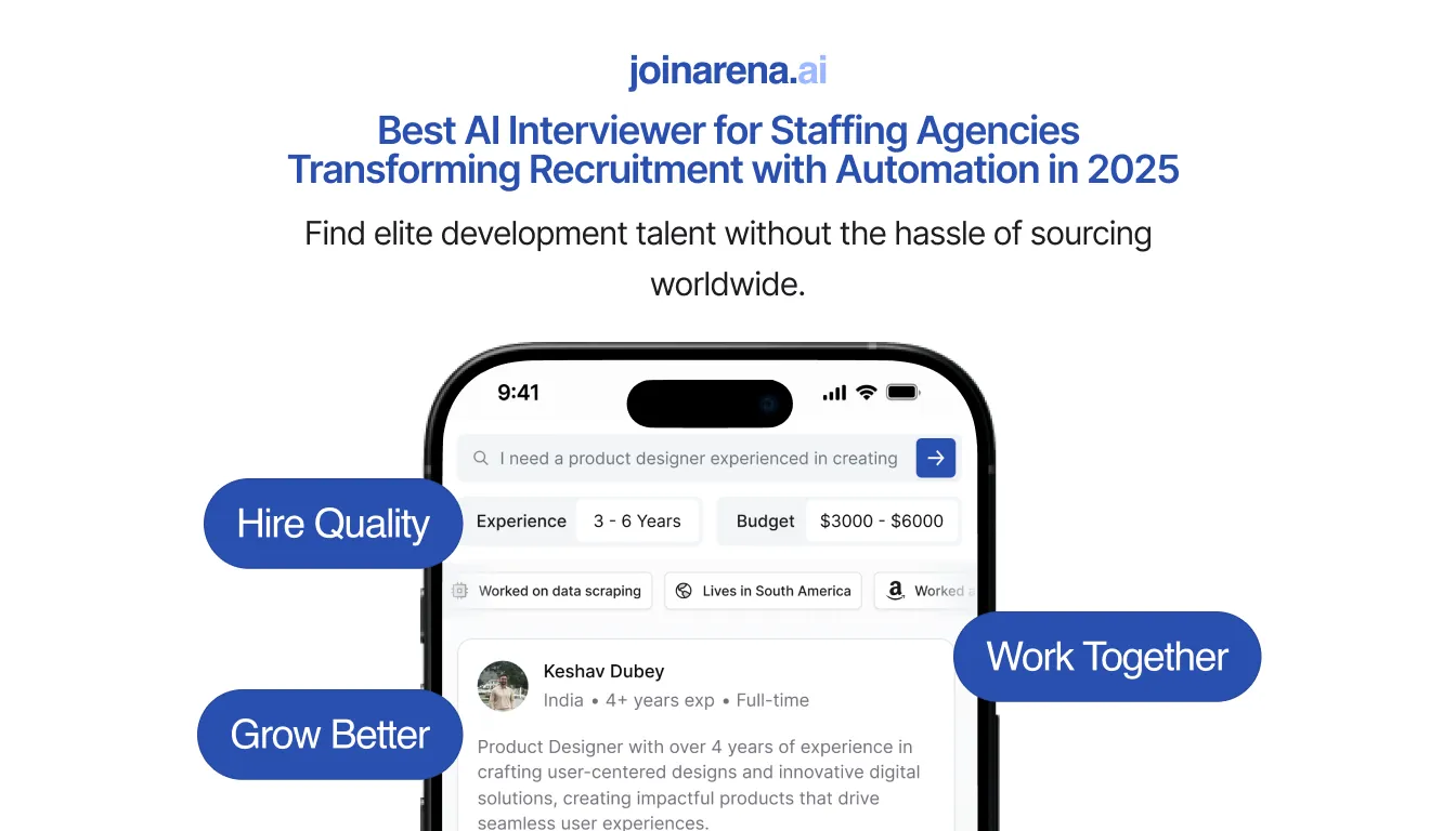 Considering how hiring is rapidly evolving in the digital age, JoinArena.AI has emerged as a standout AI interviewer that's reshaping how staffing agencies work. Let's explore why this platform is making waves with its cutting-edge features: