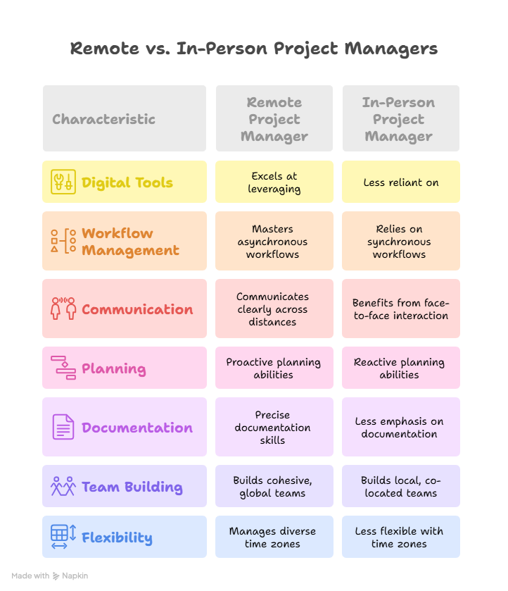- Remote Morale Management: It’s not just about Gantt charts. PMs lead in culture, motivation, and feedback—especially when teams never meet in person.