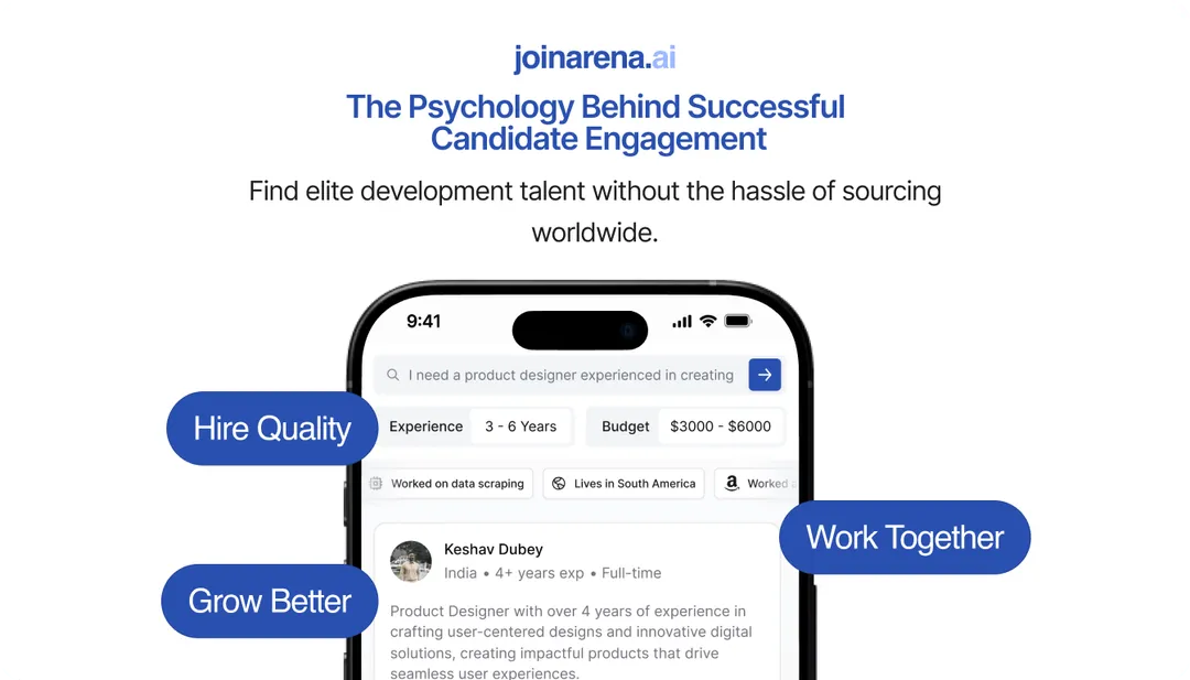 AI and technology have transformed how organizations engage with candidates, making the recruitment process smoother and faster. Platforms like JoinArena offer a complete one-stop hiring solution, ensuring candidate engagement at every step. With its Talent Hub, JoinArena provides pre-vetted candidates from across the globe, screened using their cutting-edge AI Interviewer. This free AI Interviewer can also prescreen your pipeline (upto 100 candidates free) , rank the entire application pool, and seamlessly integrate with your ATS to enhance hiring efficiency. Book your demo today and experience AI recruitment firsthand!
